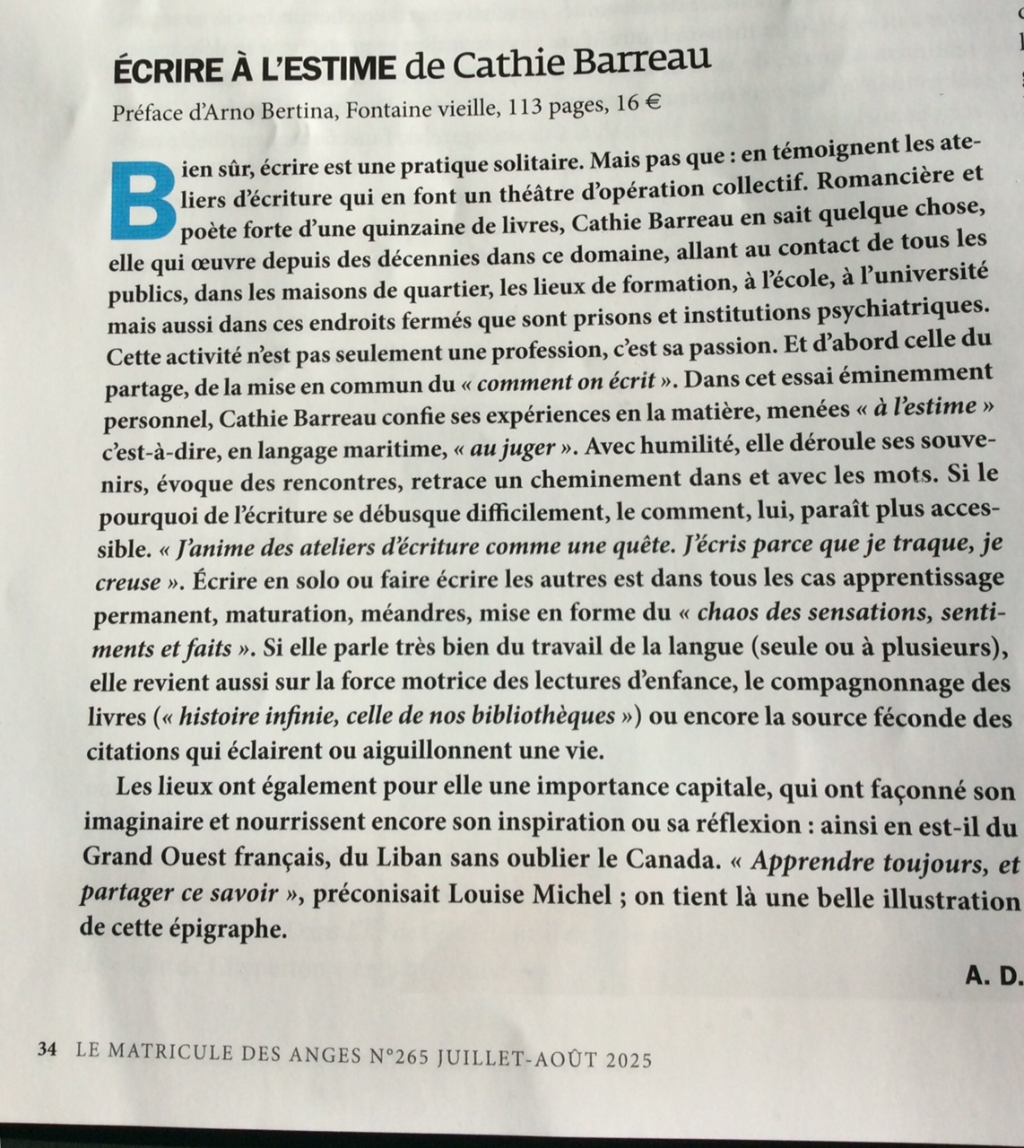 Le Matricule des anges, été 2025, article de Anthony Dufraisse